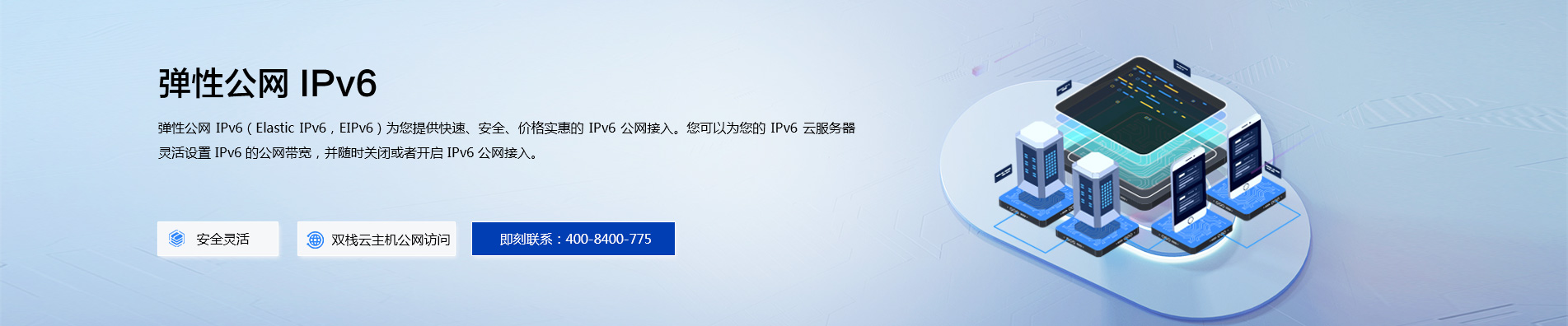 弹性公网 IPv6(Elastic IPv6,EIPv6)为您提供快速、安全、价格实惠的 IPv6 公网接入。